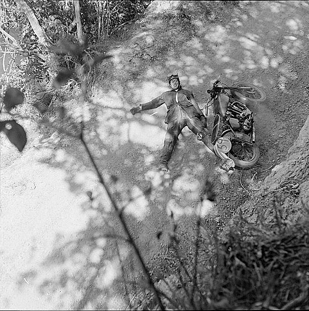 Photos published in the Evening Post on 10 November 1958 of a motorcycle accident during a race in Horokiwi.